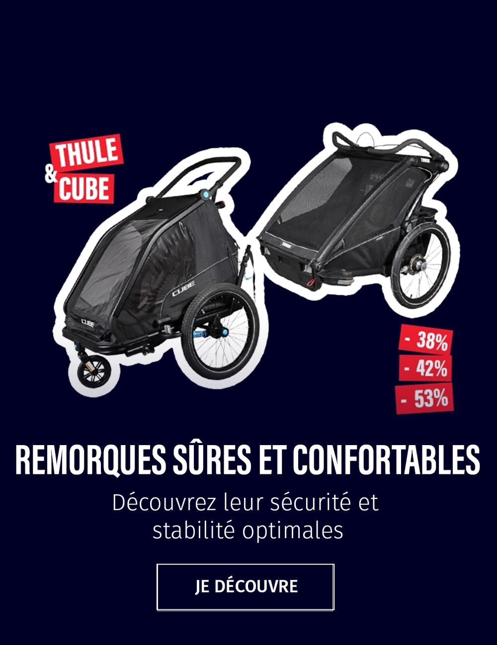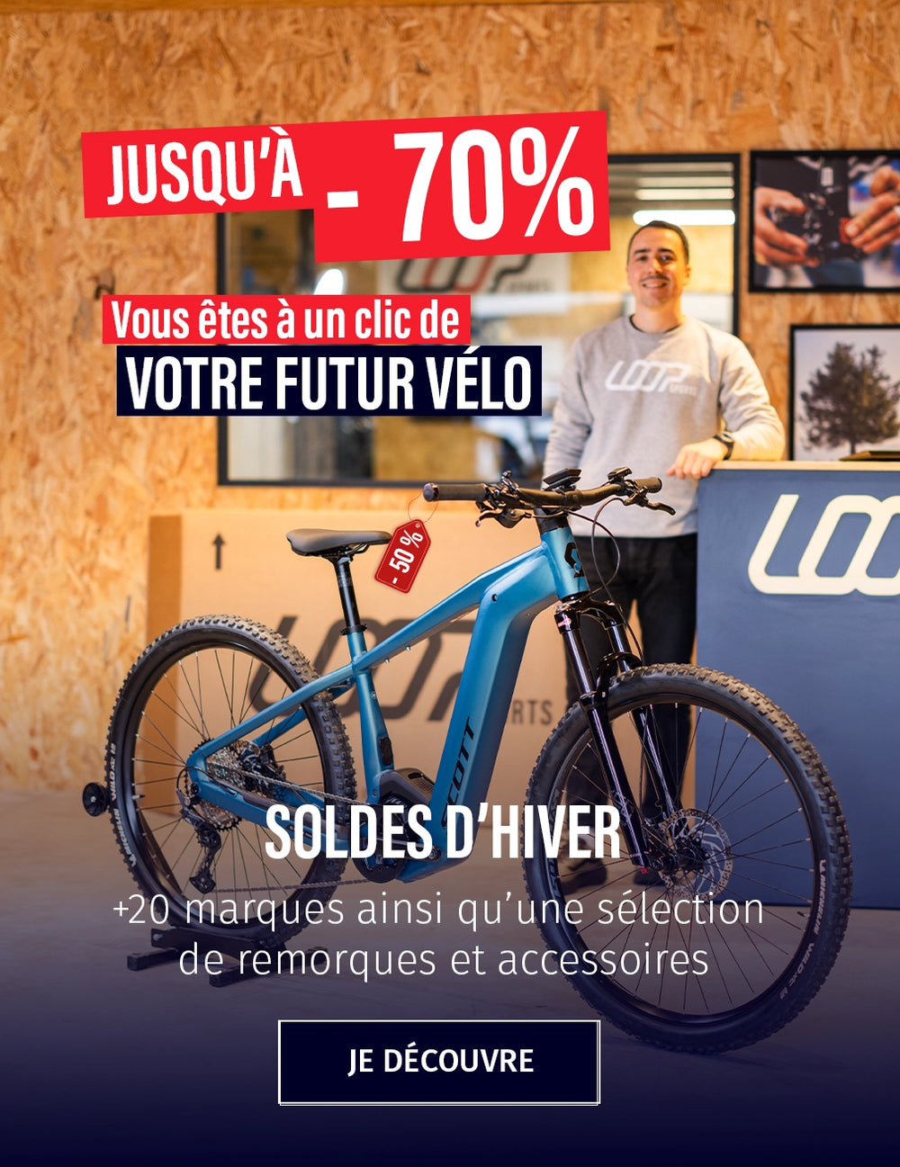 Les soldes concernent également les remorques proposées ainsi qu'une large sélection d' accessoires bénéficiant de remises allant jusqu’à –37 %. Une occasion unique de vous équiper à prix réduit tout en faisant le choix de la qualité et de la durabilité. Achetez en toute confiance: produits rigoureusement contrôlés, accompagnement personnalisé et garantie 2 ans Loop Sports. Profitez également de notre accompagnement personnalisé pour trouver le modèle qui correspond à vos besoins et bénéficiez de la garantie 2 ans Loop Sports.