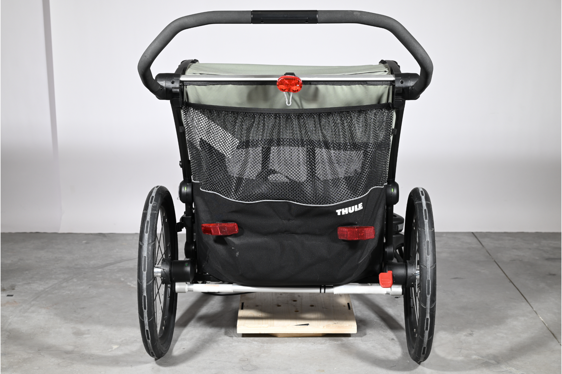 Le kit poussette transforme une remorque de vélo en poussette grâce à une ou deux roues pivotantes et une poignée ergonomique.